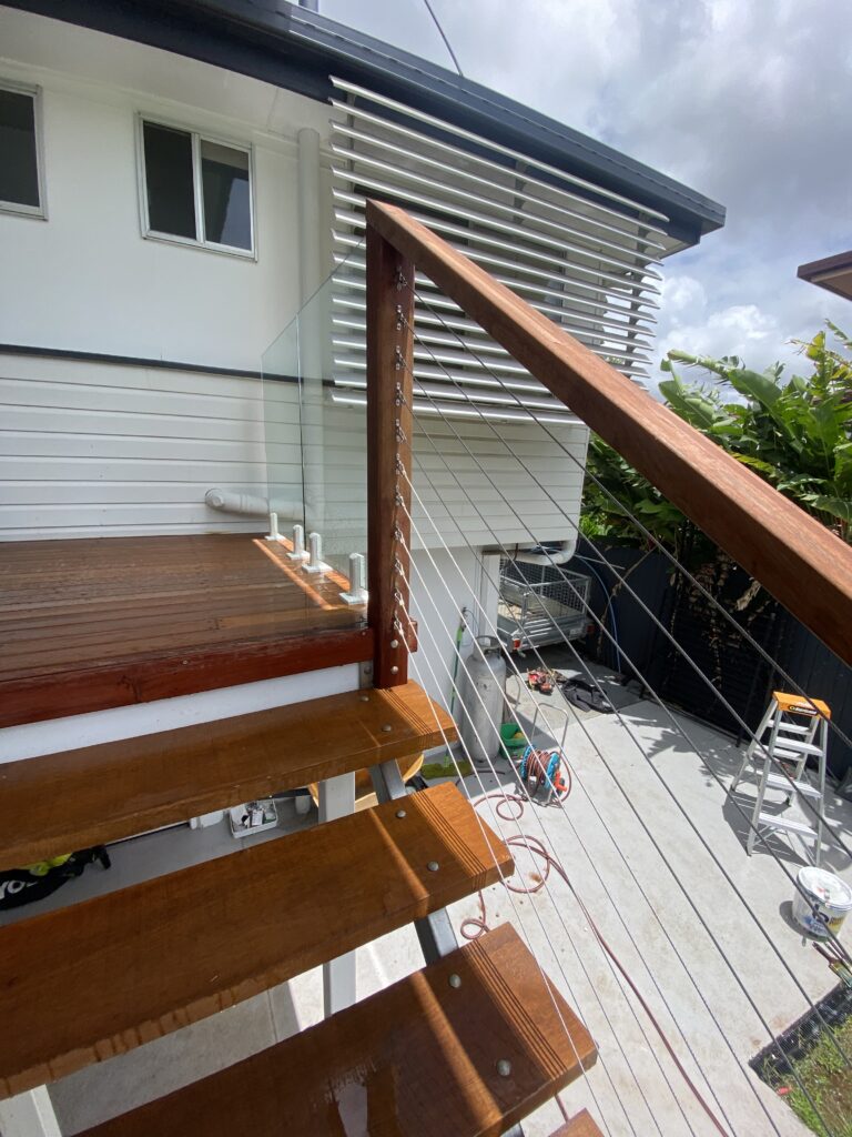 Balustrades are more than just a safety feature—they’re a design statement that can transform your staircase or deck into a standout feature of your home. One of the most popular options we install is the combination of hardwood timber posts and marine-grade stainless steel cables. This design seamlessly blends timeless elegance with modern simplicity, while delivering the safety and strength required under the building code.